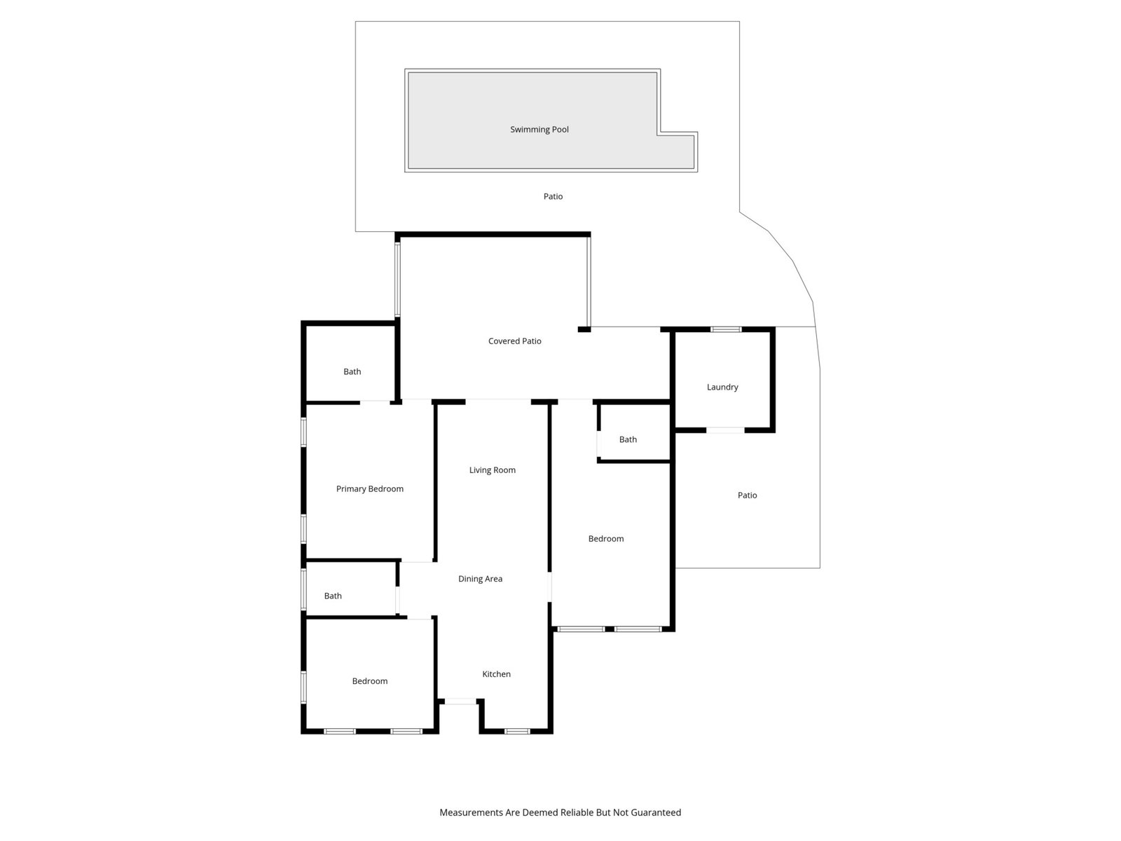 Step inside and you’ll find three bedrooms and three bathrooms, each designed for comfort and privacy. Two of the bedrooms open directly onto the poolside patio, allowing you to wake up and step straight into a private retreat. Each room comes with its own bathroom, a detail that offers convenience for families, guests, or those envisioning a home with private guest suites.