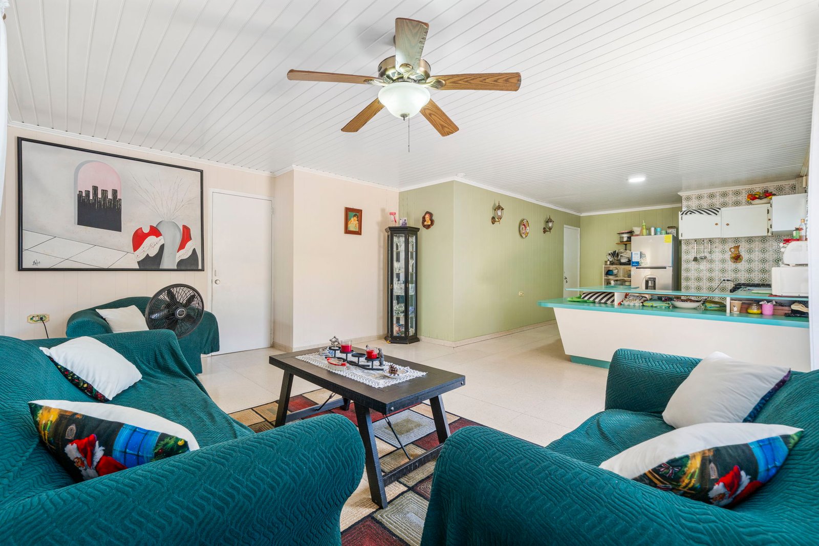 Behind the commercial space sits a comfortable residence, featuring: