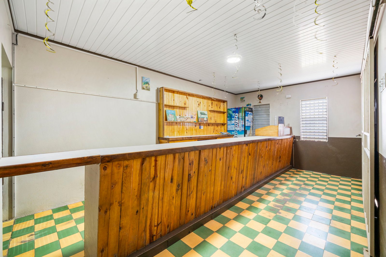 At the front of the property, you’ll find a spacious unit ideal for a bar, restaurant, or other venture. The unit includes: